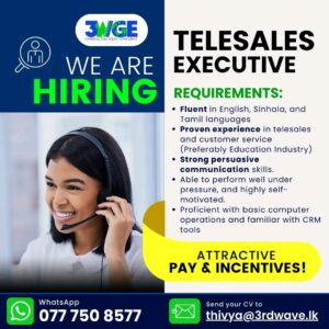 Deadline:- 8th May 2025 🚨 We’re Hiring: Telesales Executive at 3WGE!Join our dynamic team and earn attractive pay + high...