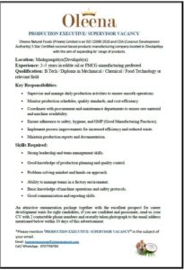 Deadline :- 5th May 2025 Production Executive job vacancy is availablePlace- Madagampitiya Company:- Oleena Natural Foods Send your CV :-...