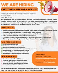 Deadline:- 7th May 2025 🚨 WE'RE HIRING – Remote Customer Support Agents (Sri Lanka) 🌍📣 Join KD Associate INC and...