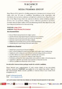 Deadline:- 5th June 2025 Mega Pharma Group Send your CV :- hr@megapharma.lk After O/ L