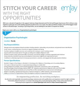 Deadline:- 7th June 2025 Company:- Emjay Location:- Kandy Bachelor's degree in psychology or sociology or psychology and counseling