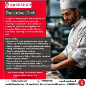 Deadline:- 8th June 2025 We're Hiring: Executive Chef Join BakeShop, where passion meets creativity in every bite! We're looking for...