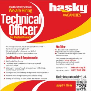 Deadline:- 7th June 2025 Company:- Hasky International Pvt ltd Send your CV:- info@hasky.lk Location:- Kadawatha Sri Lanka Job Vacancies Electrical...
