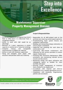 Deadline:- 7th June 2025 A. Baur & Co. (Pvt.) Ltd. Step into Excellence! Job Vacancy for Maintenance Supervisor / Property...
