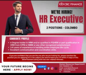 Deadline:- 14th May 2025 Join Our Team at CBC Finance - We're Hiring HR Executives in Colombo Looking for a...