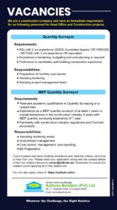 Deadline:- 29th May 2025 Company:- Sathuta Builders Location:- Kurunegala Send your CV :- career@sathuta.net Sri Lanka Quantity Surveyor Job Vacancy...