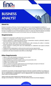 Deadline:- 7th June 2025 Company:- Finetech Send your CV:- jobs@fcpl.biz Location:- Rajagiriya Sri Lanka IT job vacancy Join Finetech Consultancy,...