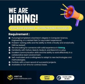 Deadline:- 27th May 2025 Join our team at HashBaze!! We're looking for Software Engineer Intern/Trainee (GoLang) Submit your CV via...