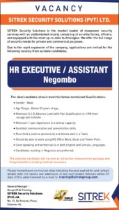 Deadline:- 12th June 2025 Company:- Sitrek security solutions Pvt ltd Location:- Negombo Send your CV:- training@sitrekgroup.com Sri Lanka Human Resources...