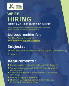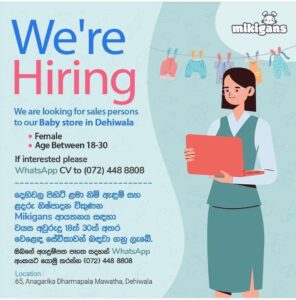 Deadline:- 10th June 2025 Vacancy Available 🚨 Join Our Team 🤗Location - DehiwalaWorking Hours - 10.30am - 08.00pmSalary - Will...