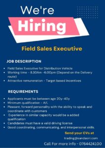 Deadline:- 10th June 2025 Engineers! Ready to innovate in Colombo? A. F. Jones Exporters (part of Capital Maharaja Group) is...