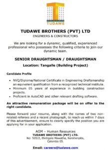 Deadline :- 20th June 2025 Company:- Tudawe Brothers Pvt ltd Send your CV :- careers@tudawe.com Experience in Building construction Proficiency...