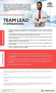 Deadline:- 10th July 2025 Lead the Tech & Digital Transformation at Toyota Lanka! Are you ready to drive change, energize...