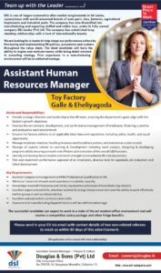 Deadline :- 10th July 2025 Company:- Douglas and sons Pvt ltd Send your CV:- careers@douglas.lk Location:- Galle and Eheliyagoda
