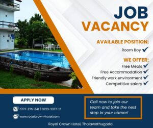 Deadline:- 15th July 2025 π¨ Job Vacancy β Room Boy (Housekeeping Staff)π Royal Crown Hotel β Thalawathugoda We are hiring...