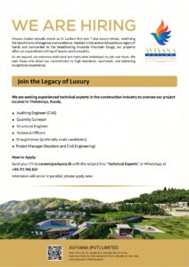 Deadline:- 25th July 2025 Aviyana Ceylon proudly stands as Sri Lanka’s first-ever 7-star luxury retreat, redefining the benchmarks of elegance...