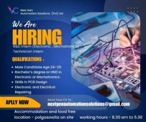 Deadline :- 19th December 2025 Position:- Solar TechnicianCompany:- U I Technical ServicesLocation:- HomagamaSend your CV:- hr@uitsgroup.com Sri Lanka engineering job...