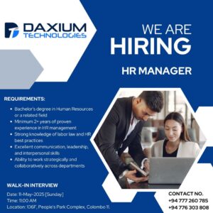 Deadline :- 13th December 2025 Location:- Jaffna Apply Now :- 0779295909 Salary :- Rs 150 000/-