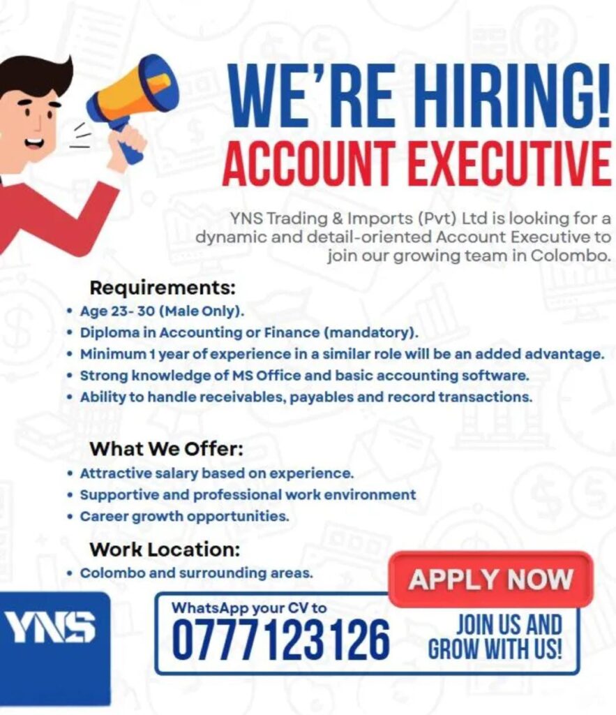YNS Trading & Imports (Pvt) Ltd is on the lookout for a dynamic and detail-oriented Account Executive to join our growing team in Colombo.