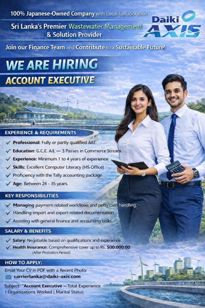 Daiki Axis Environment (Pvt) Ltd., a 100% Japanese-owned company and Sri Lanka’s premier wastewater management solution provider, is expanding its team.