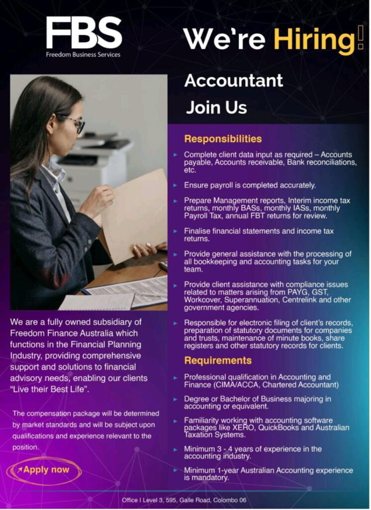 Sri Lanka Finance and Accounts Job Vacancy