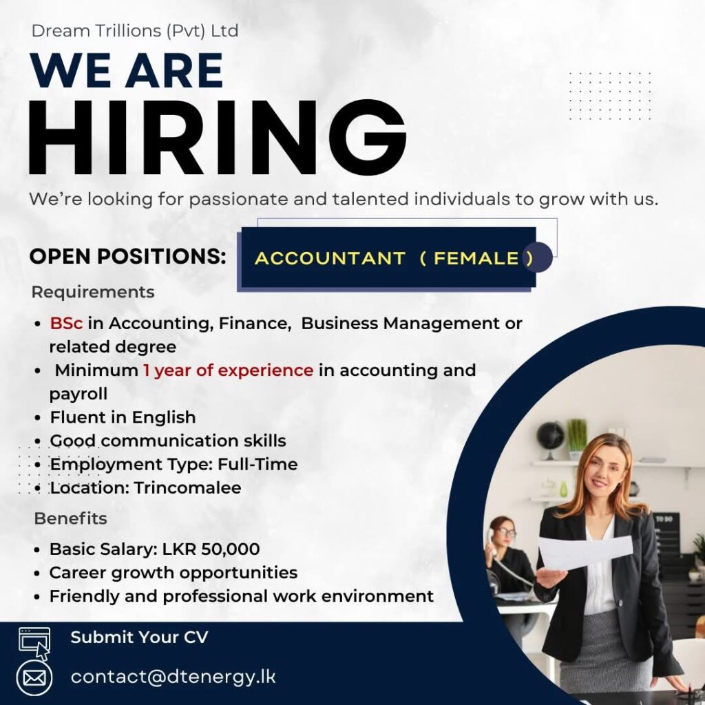 Dream Trillions (Pvt) Ltd is seeking a detail-oriented and responsible Accountant to support daily accounting, payroll, and financial operations. This role is ideal for a motivated individual with a solid understanding of accounting principles and a strong commitment to accuracy and compliance.