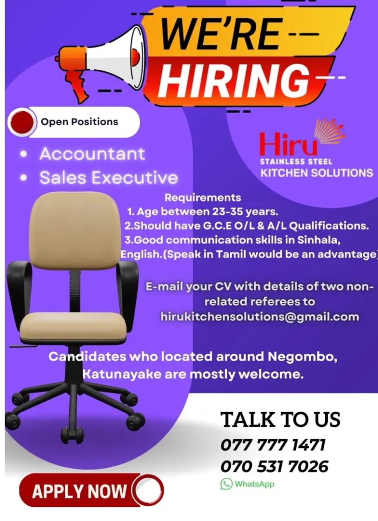 π Apply Now and build your future with Hiru Stainless Steel Kitchen Solutions!