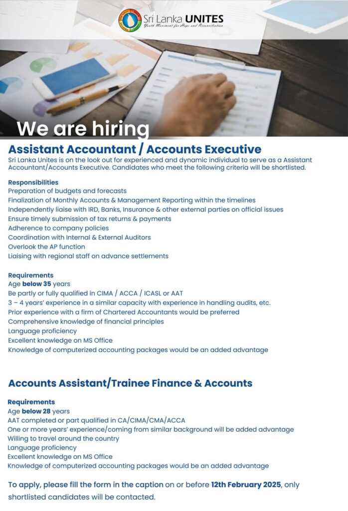Are you passionate about finance and looking for an opportunity to grow? Sri Lanka Unites is on the lookout for an Accounts Assistant / Trainee – Finance & Accounts to join our dynamic team!
