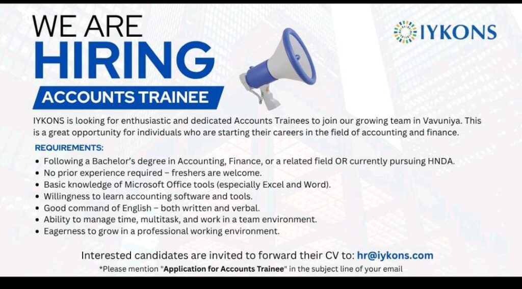IYKONS is looking for enthusiastic and dedicated Accounts Trainees to join our growing team in Vavuniya!