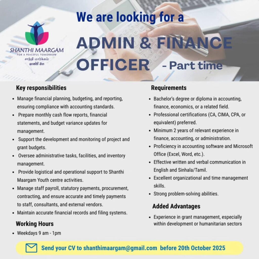 Shanthi Maargam is looking for a part-time Admin & Finance Officer. 📝