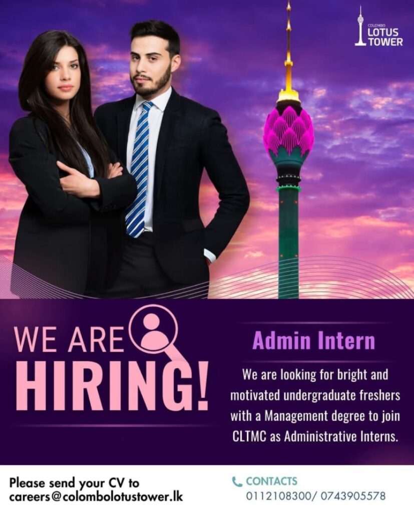 Colombo Lotus Tower Management Company is looking for a responsible and well-organized Admin Intern to support day-to-day administrative operations and gain valuable workplace experience.