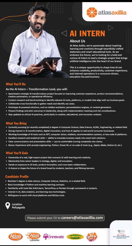 If you’re passionate about Al, innovation, and applying new technologies to real-world challenges, this is a great opportunity to gain hands-on experience while shaping the future of a beloved Sri Lankan brand.