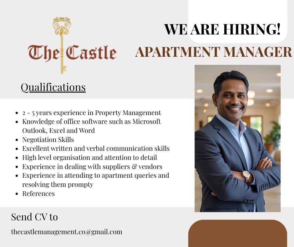🏢 Vacancy:-  Apartment Manager – The Castle Residencies, Borella