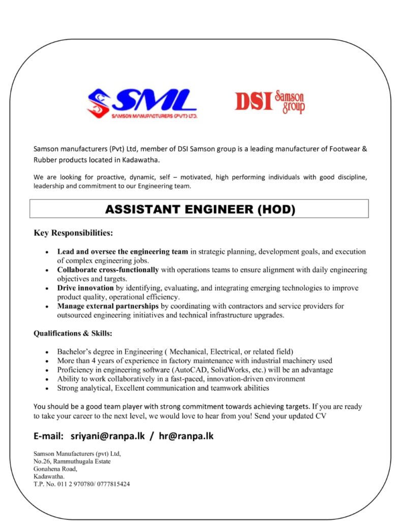 Apply Now :- hr@ranpa.lk/ Sriyani@ranpa.lk