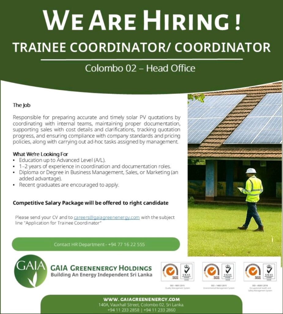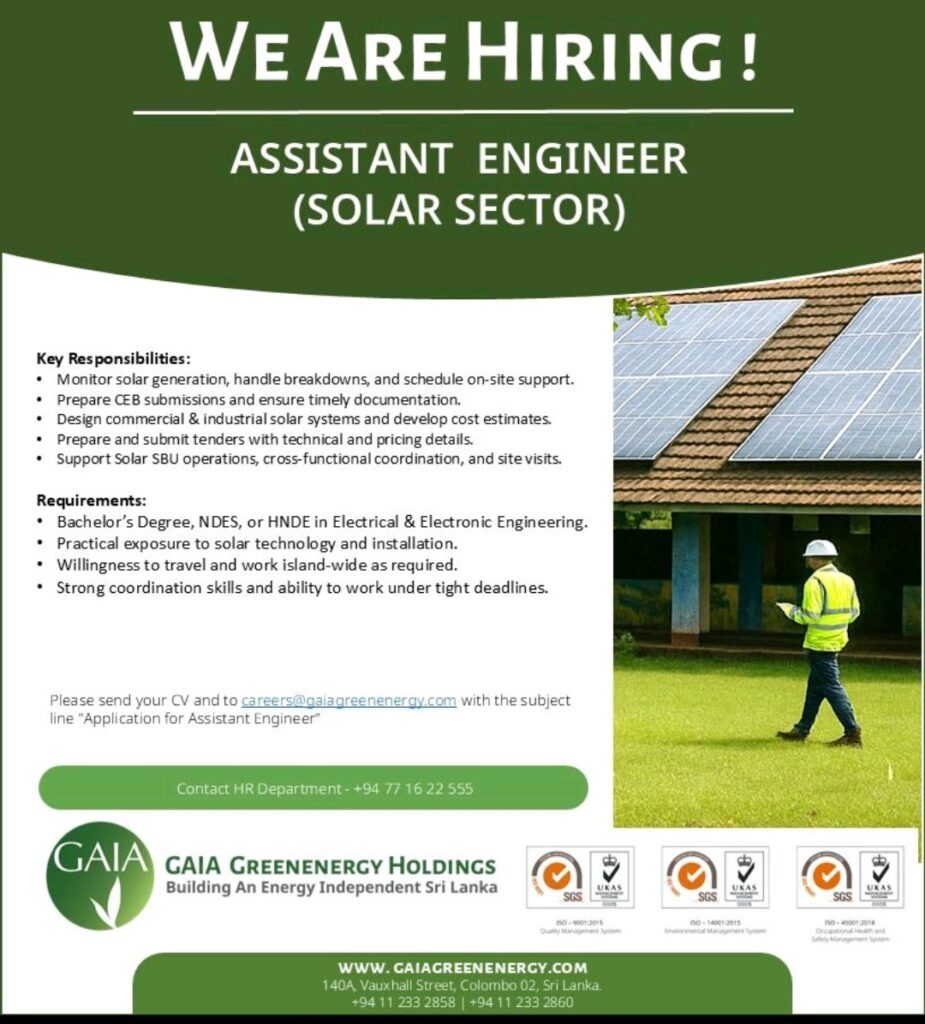 Apply Now :- careers@gaiagreenenergy.com