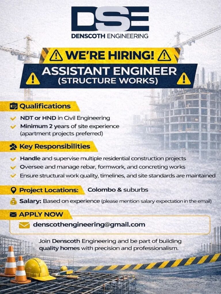 We’re hiring Assistant Engineers to join our growing team and work on multiple residential construction projects in and around Colombo.