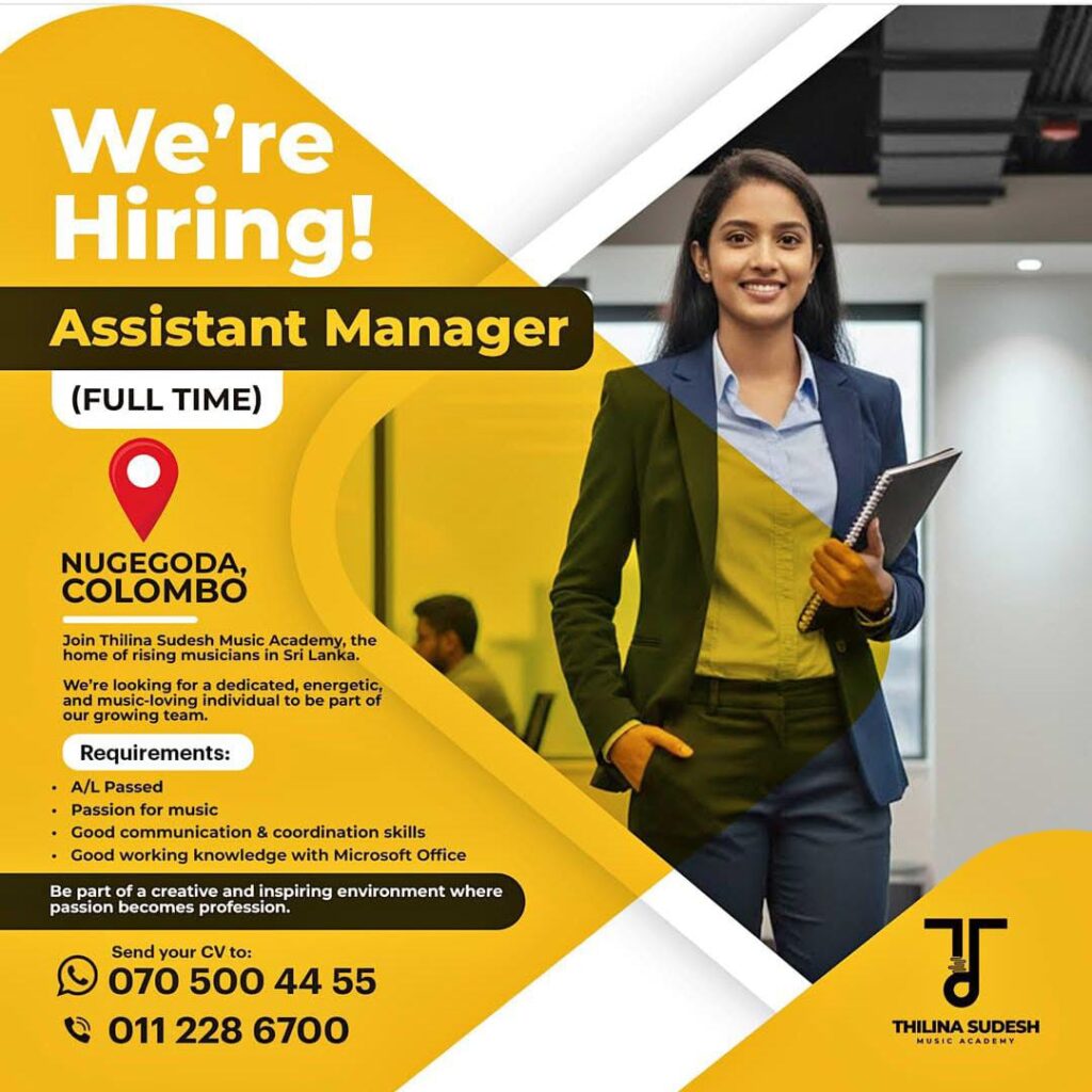 We’re hiring a Tech-Smart Assistant Manager at Thilina Sudesh Music Academy, Nugegoda!