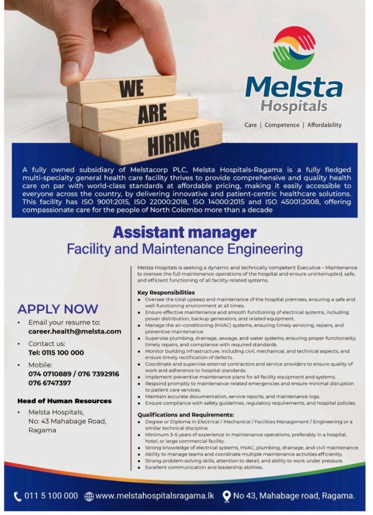 Facility and Maintenece Enginner requirement at Melsta Hospitals