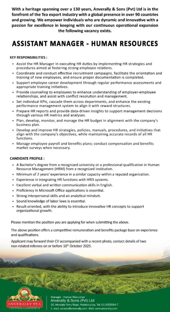 ASSISTANT MANAGER – HUMAN RESOURCES