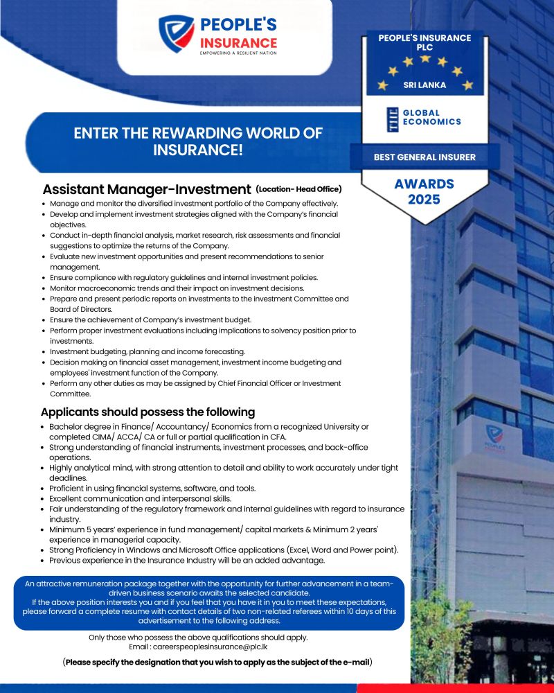 Apply now: careerspeoplesinsurance@plc.lk