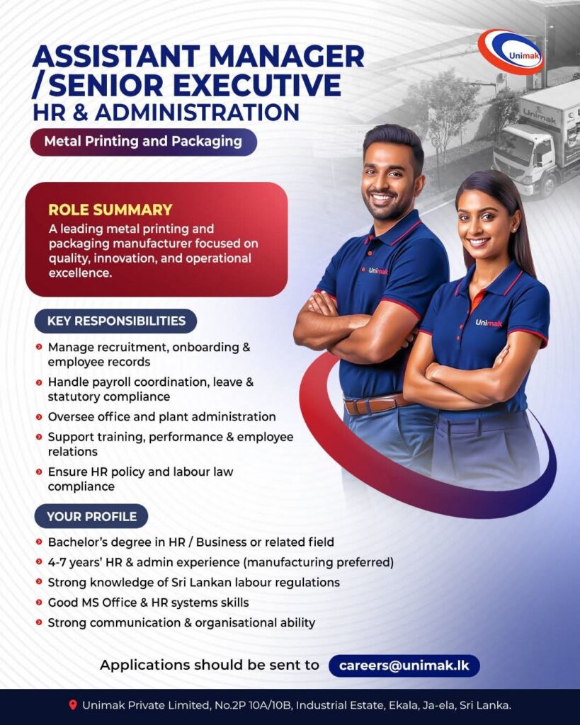 📩 Send your CV to: careers@unimak.lk
