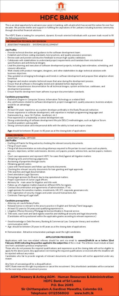 Apply Now :- careers@hdfc.lk