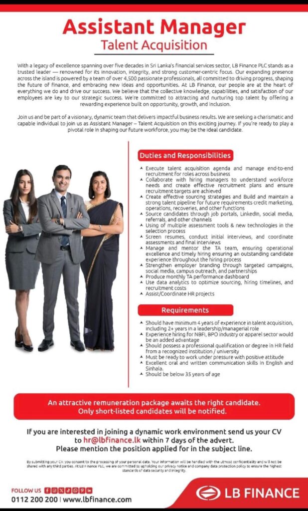 Apply now by sending your CV to hr@lbfinance.lk