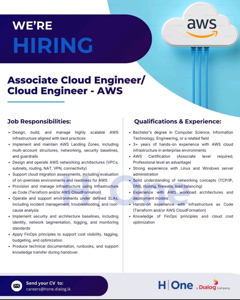 We’re Hiring | AWS Cloud Engineer – Infrastructure H One (Pvt) Ltd (Subsidiary of Dialog | Microsoft Partner)