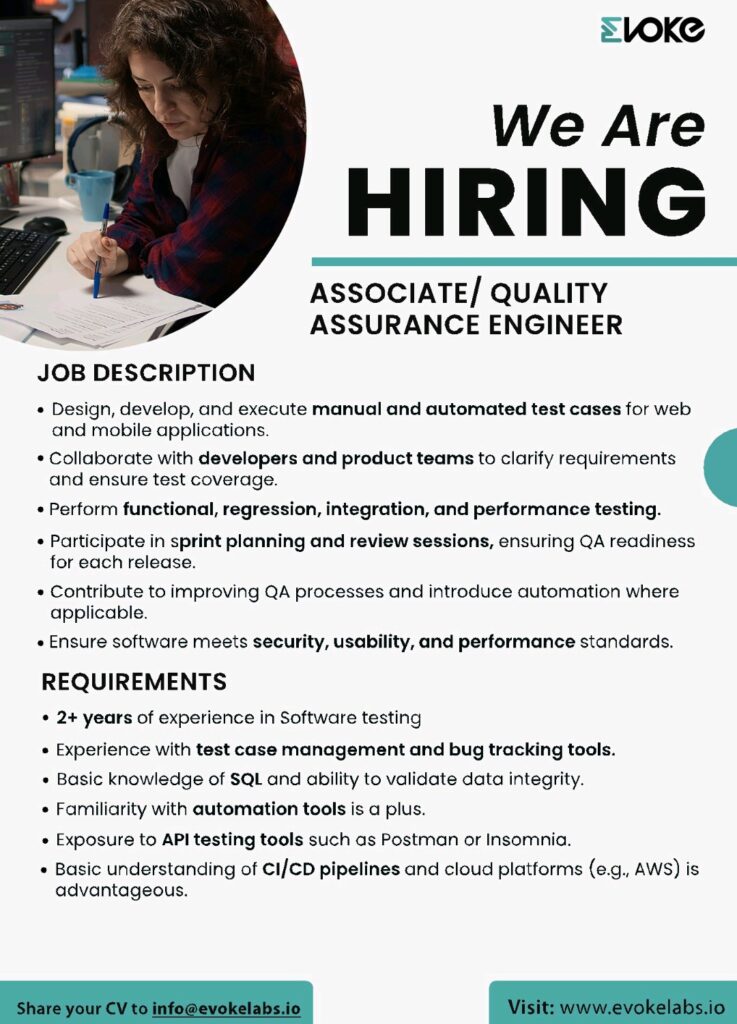 Evoke Labs is excited to welcome passionate and motivated QA Engineers to join our growing team. This is a great opportunity for aspiring QA professionals to gain hands-on experience, work with modern technologies, and grow their careers in a collaborative and supportive environment.
