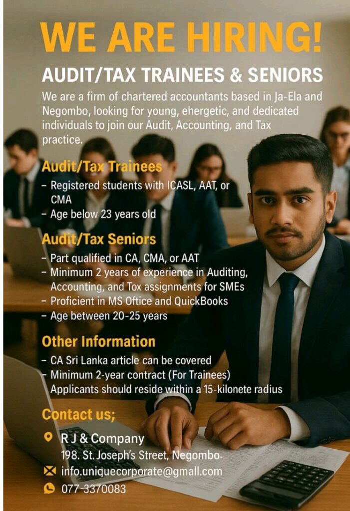 We are expanding our team at R J & Company and are currently recruiting Audit/Tax Trainees and Seniors.