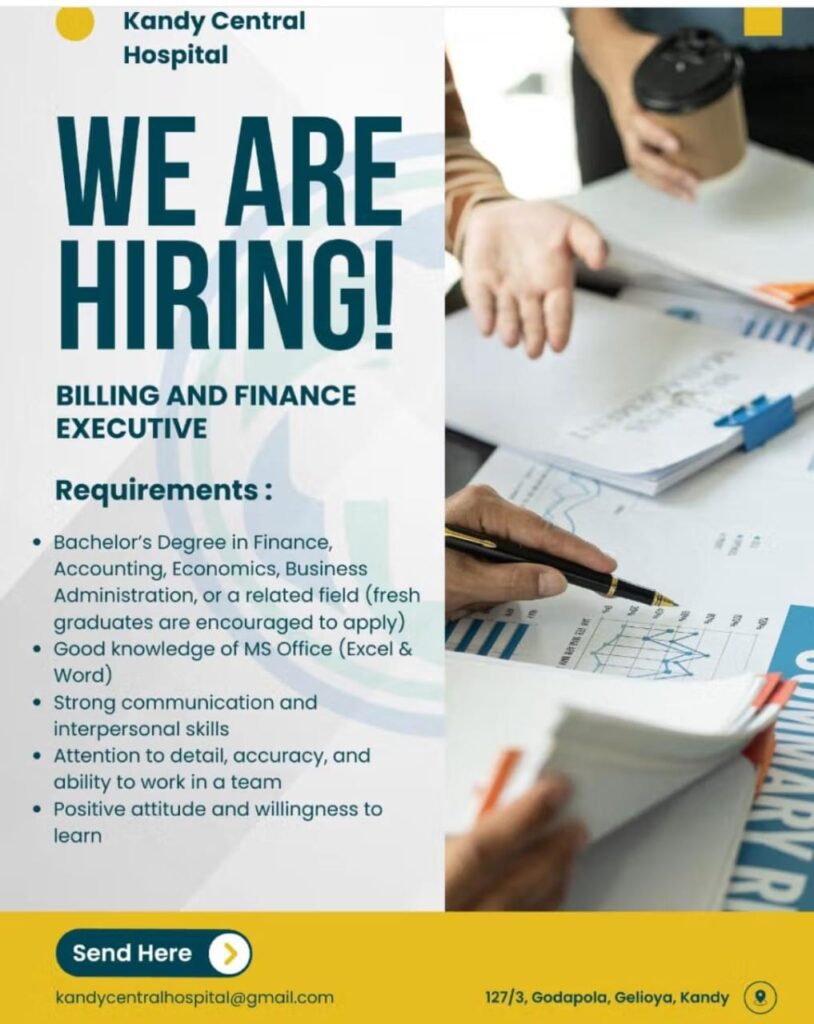 We’re looking for a Billing and Finance Executive to join Kandy Central Hospital.