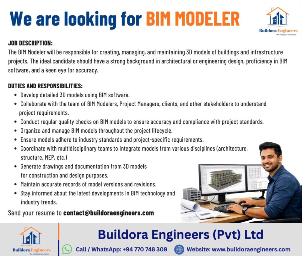 Buildora Engineers is looking for a skilled BIM Modeller to join our dynamic team! If you have a passion for creating precise 3D models, collaborating on exciting civil engineering projects, and growing your career in a professional environment, we want to hear from you.