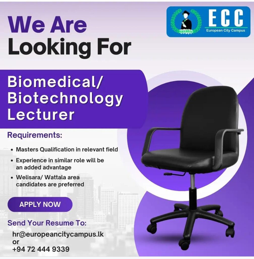 European City Campus (ECC) is looking for a passionate and qualified Biomedical/Biotechnology Lecturer to join our growing academic team.