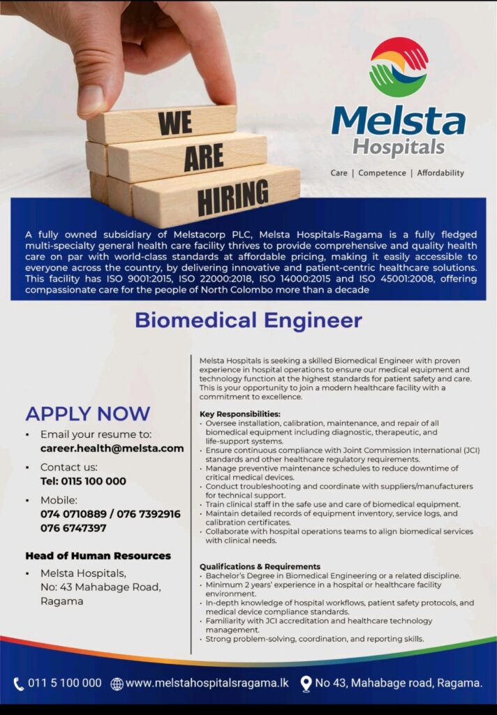 Vacancy for a qualified Bio Medical Engineer at Melsta Hospital